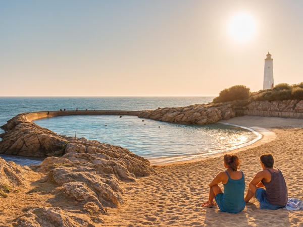 Accessible par la Corniche du Nouch (à moins de 5 km des Océanes), ce bassin est bien entretenu. Il est vidé et nettoyé toutes les 2 semaines, puis se remplit à marée haute. En haute saison, il est surveillé (poste de secours actif en été). Grâce à son calme et à ses eaux protégées, c’est un lieu parfait pour une baignade paisible et contemplative.